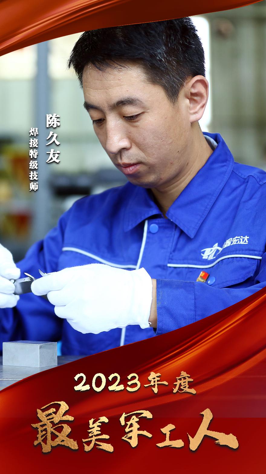 陳久友作為中國航天科工三院特級技師,是中國航天復雜構件高性能焊接專業的領軍人物,從業二十多年,始終扎根基層、埋首一線。在他帶領下,先后完成了眾多產品的焊接攻關及課題技術研究,突破了多項技術難題,大幅提升了航天裝備焊接質量和效率,成立了以其名字命名的航天科工集團技能大師工作室,培養了一大批優秀技能人才,為我國航天事業發展作出重要貢獻。