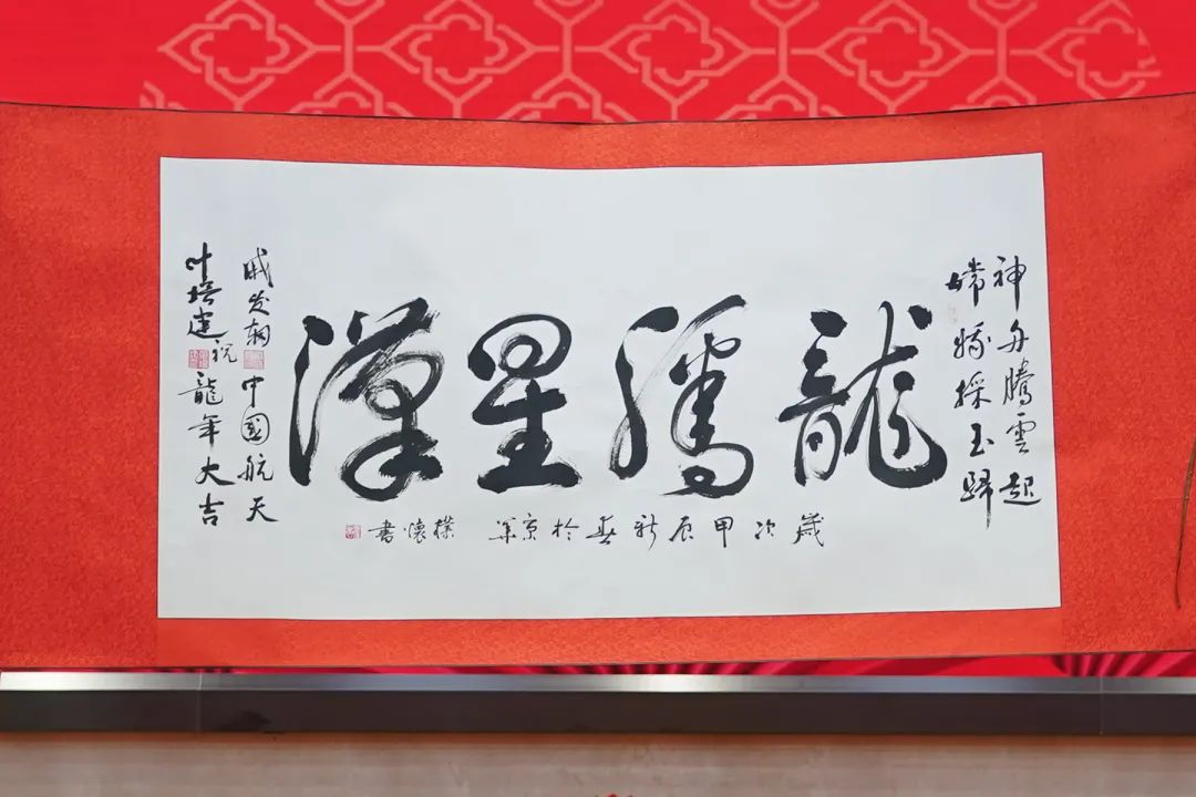▲ 現場展示航天老同志創作的部分2024年迎新春書畫作品