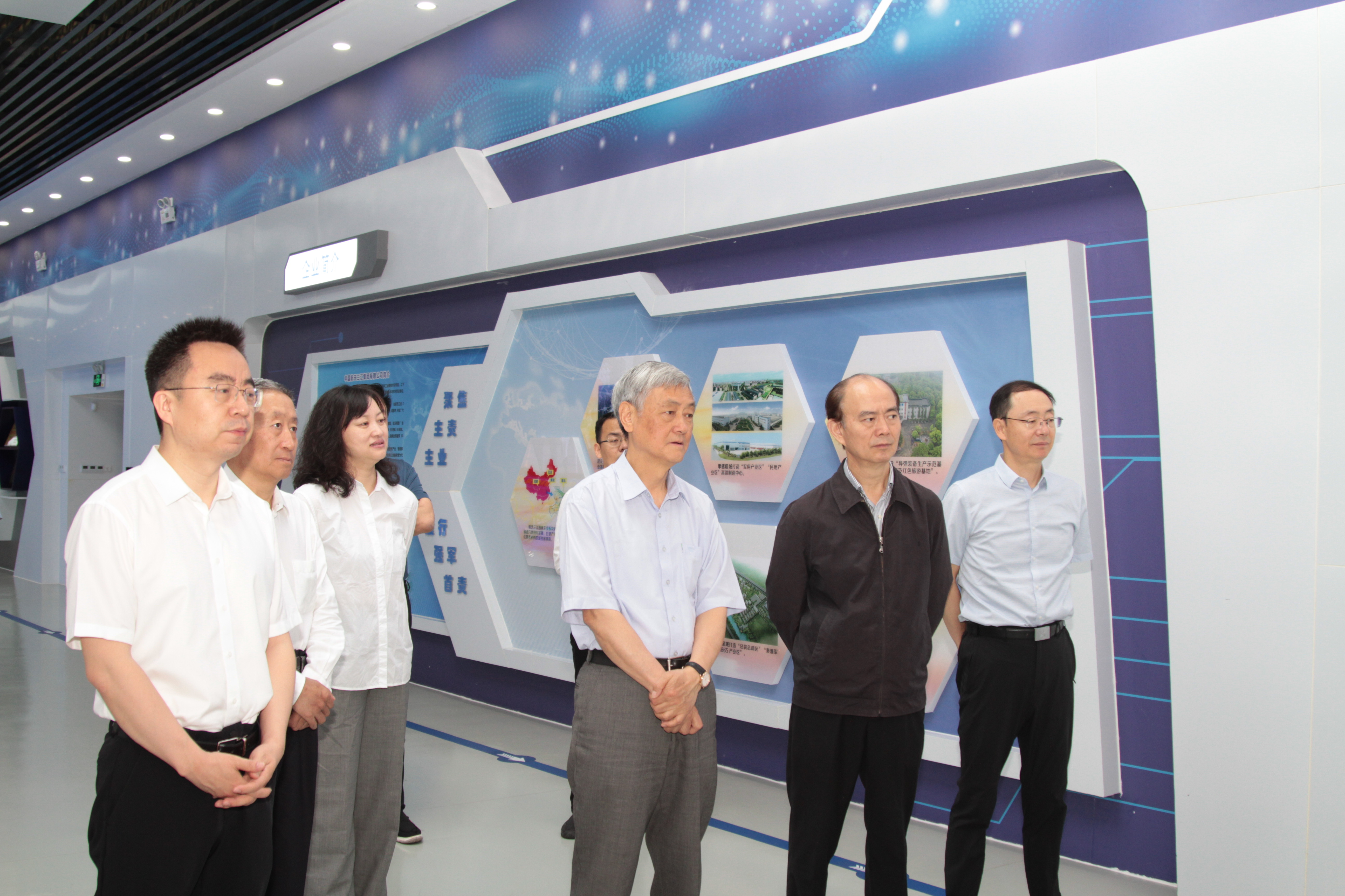 集團公司外部董事一行深入現場調研快舟火箭、激光裝備、智能移動裝備等重點產業產品發展情況,參觀了066基地舊址和航天三江展廳,聽取了綜合工作情況匯報。