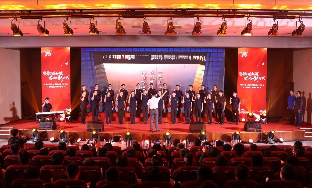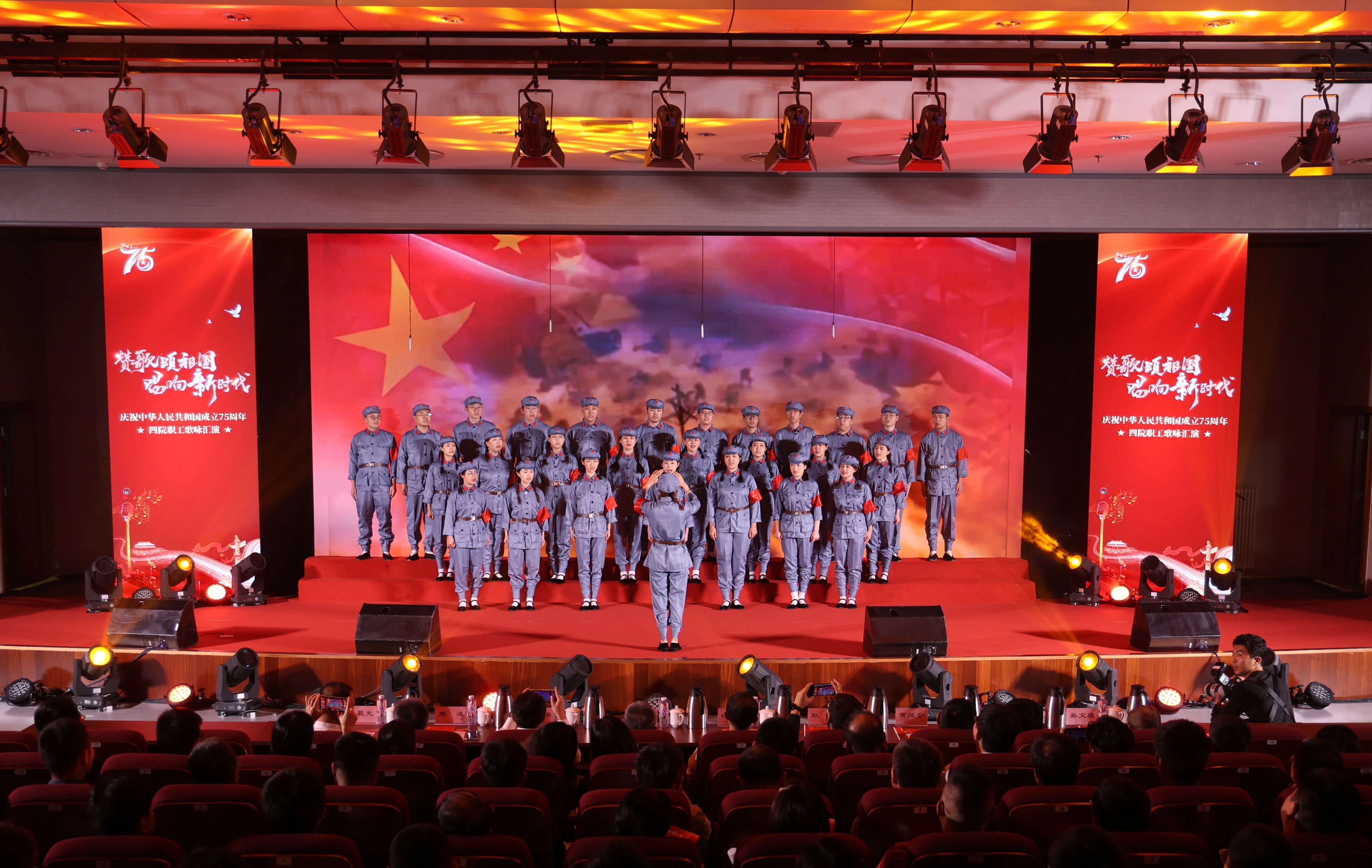 為熱烈慶祝中華人民共和國成立75周年,激發干部職工愛黨愛國熱情,9月28日,四院舉辦了“贊歌頌祖國 唱響新時代”主題職工歌詠匯演活動。四院全體在家領導班子出席活動并與參演全體職工大合唱。
