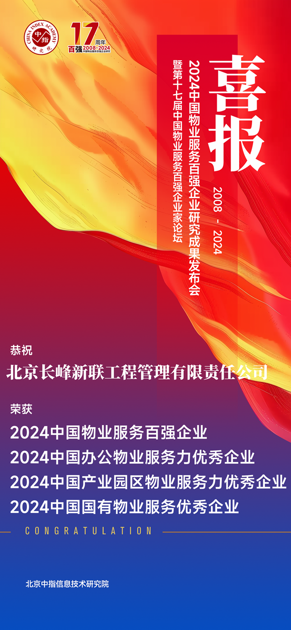 二院長峰新聯公司獲2024中國物業服務百強企業等多項大獎
