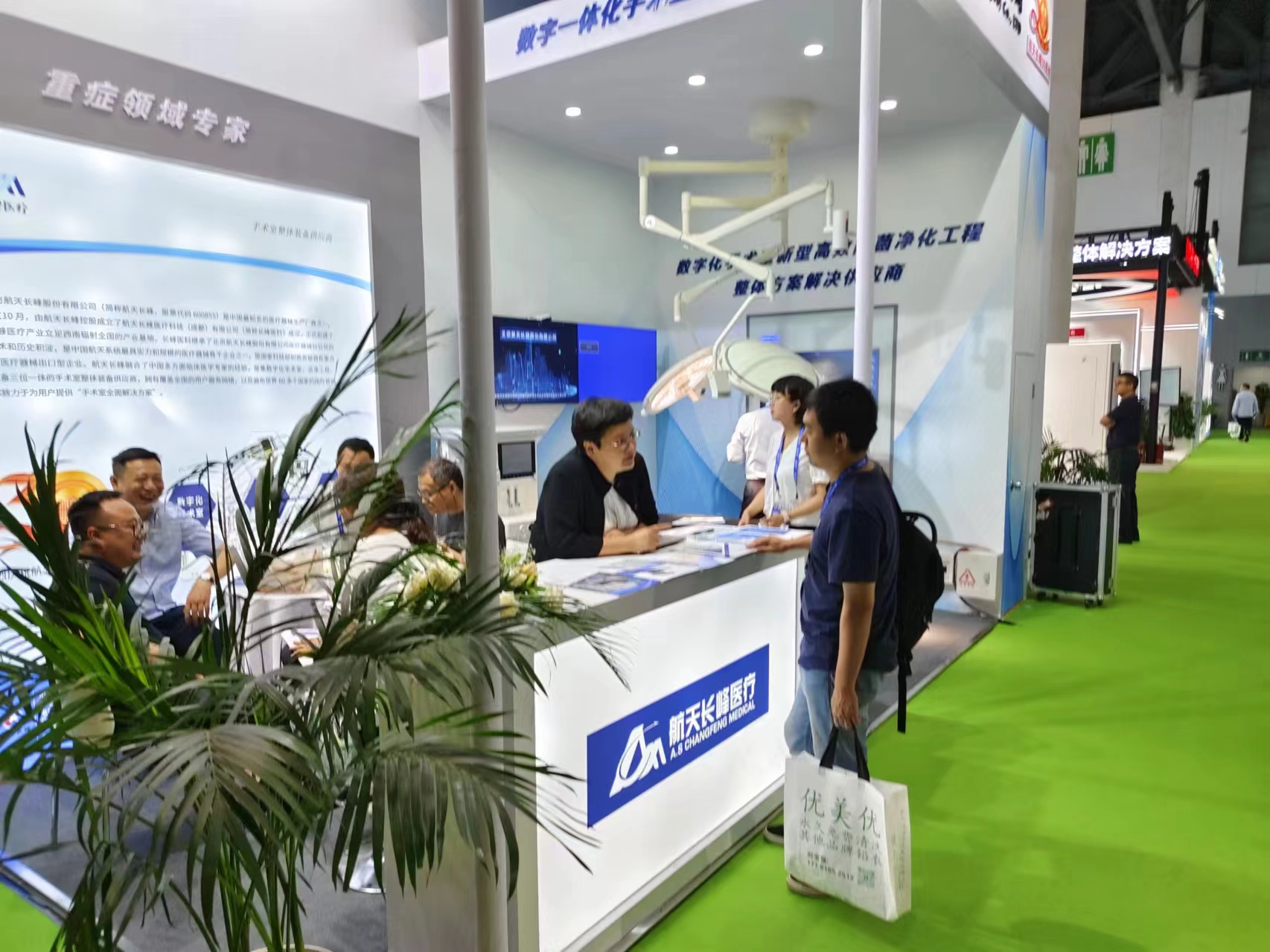 中國航天科工二院航天長峰醫(yī)療坐擁主場優(yōu)勢,攜主力產品參加此次盛會,AIMdoris數(shù)字化手術室首次亮相,新型高效除菌凈化工程、ACM639麻醉機、ACM-L6800 LED手術無影燈、ACM-T600國產手術床等高端醫(yī)療裝備也吸引了眾多參展嘉賓駐足洽談。