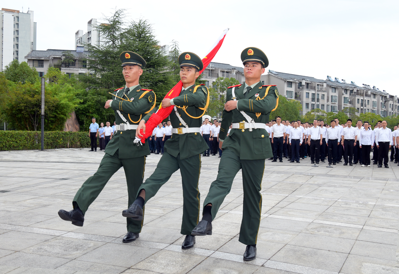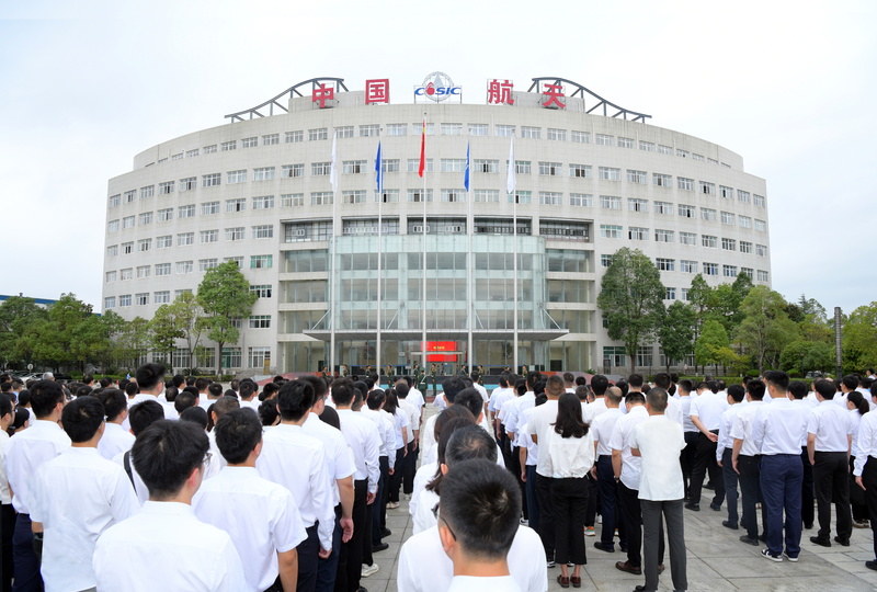上午8時,伴隨著雄壯激昂的國歌以及航天科工之歌,五星紅旗和集團公司司旗先后冉冉升起。辦公樓前排成整齊隊伍的干部職工精神飽滿,肅然而立,面對國旗行注目禮。