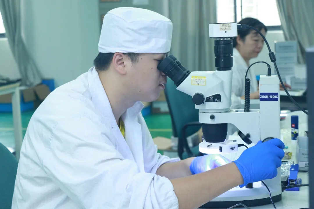 篩選員們像偵探般,以極致的耐心“偵查” 器件的潛在問(wèn)題,調(diào)角度、換光源、變焦距,用顯微鏡反復(fù)觀測(cè)對(duì)比每一個(gè)細(xì)節(jié)。檢測(cè)一個(gè)器件至少要3分鐘,操作期間眼睛幾乎不離目鏡,一天需要檢測(cè)上百個(gè)器件。“連著盯一上午目鏡,眼睛又脹又痛,但我們不敢快,也快不了。連接器曲面多、引腳深,找到一個(gè)最佳觀察點(diǎn)就像在迷宮里找出口。”小鄭揉著發(fā)紅的眼眶笑著說(shuō)道。