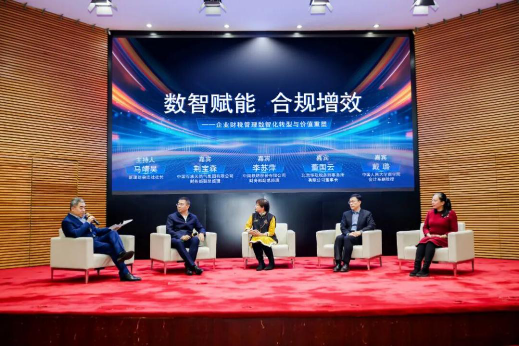 圓桌討論由馬靖昊主持,中國石油天然氣集團有限公司財務(wù)部副總經(jīng)理荊寶森、中國鐵塔股份有限公司財務(wù)部副總經(jīng)理李蘇萍、北京華政稅務(wù)師事務(wù)所有限公司董事長董國云、中國人民大學副教授戴璐等嘉賓結(jié)合自身實踐經(jīng)驗與研究洞察,圍繞“數(shù)智賦能?合規(guī)增效——企業(yè)財稅管理數(shù)智化轉(zhuǎn)型與價值重塑”議題展開熱烈交流,分享了在政策把握、技術(shù)應(yīng)用、團隊建設(shè)等方面的寶貴經(jīng)驗。