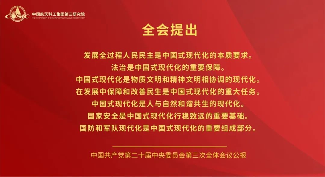黨的二十屆三中全會(huì),是在以中國(guó)式現(xiàn)代化全面推進(jìn)強(qiáng)國(guó)建設(shè)、民族復(fù)興偉業(yè)的關(guān)鍵時(shí)期召開的一次十分重要的會(huì)議。航天三院黨委將學(xué)習(xí)好宣傳好貫徹好黨的二十屆三中全會(huì)精神作為當(dāng)前和今后一個(gè)時(shí)期的一項(xiàng)重大政治任務(wù),高度重視,迅速行動(dòng),引導(dǎo)三院全體黨員干部職工把思想和行動(dòng)統(tǒng)一到全會(huì)精神上來,把智慧和力量凝聚到落實(shí)全會(huì)精神和部署上來,聚焦主責(zé)主業(yè),履行強(qiáng)軍首責(zé),持續(xù)推動(dòng)飛航事業(yè)高質(zhì)量發(fā)展。