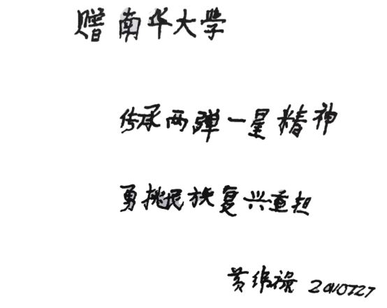 2011年,即將走到生命盡頭的黃緯祿反復(fù)進(jìn)出醫(yī)院。時(shí)至7月,病情嚴(yán)重的黃緯祿已經(jīng)完全臥床,此時(shí)南華大學(xué)組織的一個(gè)“兩彈一星”夏令營(yíng)到訪北京,要訪問(wèn)“兩彈一星”功勛獎(jiǎng)?wù)芦@得者,但約定的幾位獲獎(jiǎng)?wù)呔蚋鞣N原因無(wú)法到場(chǎng)。黃緯祿在推辭的過(guò)程中了解到組織者的難處,不顧病重依然同意接受采訪。為了滿足師生們迫切期盼得到他題字的愿望,黃緯祿在女兒黃道群的幫助下,顫顫巍巍寫下了此生絕筆——傳承“兩彈一星”精神,勇挑民族復(fù)興重?fù)?dān)。
