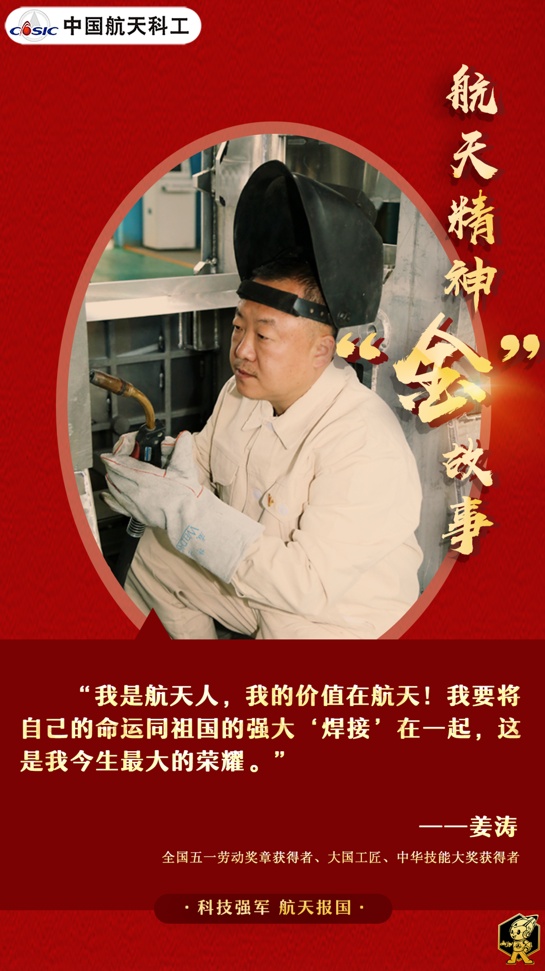 電焊工作強度高,苦、累、臟,曾經的工友們不少已離開了這個崗位,但姜濤依然堅守;也曾有民營企業高薪相邀,姜濤卻全都婉拒。別人選擇航天,綁定航天,他選擇將自己與航天“焊”在一起,這種更堅定的選擇,更牢固的綁定,不是深入骨髓的愛國之情又是什么呢?