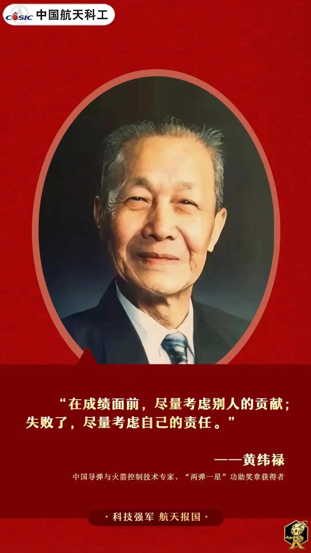 黃緯祿的言行,讓我們看到一位大科學(xué)家投身航天事業(yè)作出的選擇與追求:淡泊名利,求真務(wù)實(shí)。越是遠(yuǎn)離名利,越能聚精會(huì)神。尤其作為技術(shù)領(lǐng)導(dǎo),更要把全部精力投入到對(duì)科學(xué)真理的追求上:有榮譽(yù),讓,先人后己;有困難,上,身先士卒;有責(zé)任,扛,勇于擔(dān)當(dāng)!