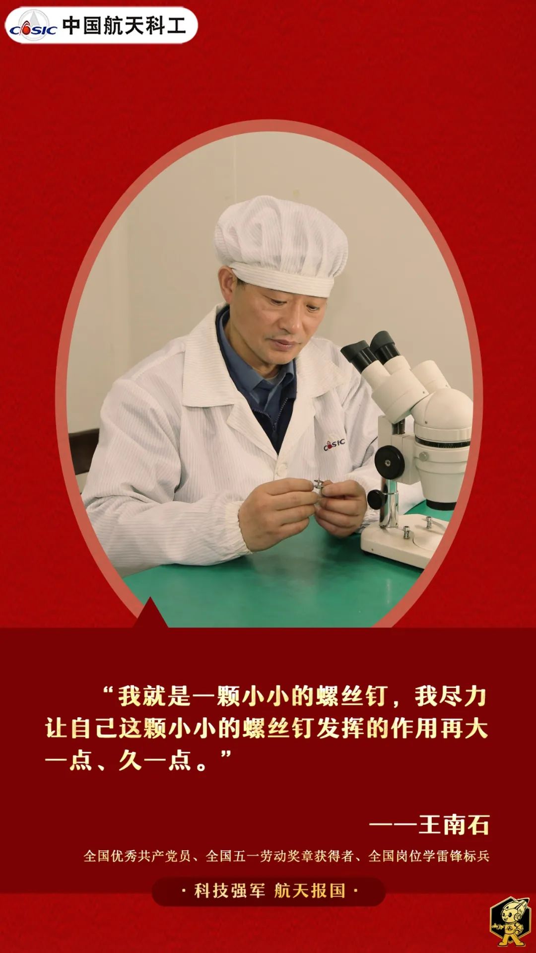 無論什么樣的崗位,無論什么樣的工作,都要盡心盡力,都要全心全意。40年來,王南石一直堅守初心,將自己視作一顆螺絲釘,哪里需要往哪里“鉆”,牢牢扎根本職崗位,認真做好本職工作。在為航天事業發展作出貢獻的同時,也讓自己的人生深深嵌進了熱愛的事業。