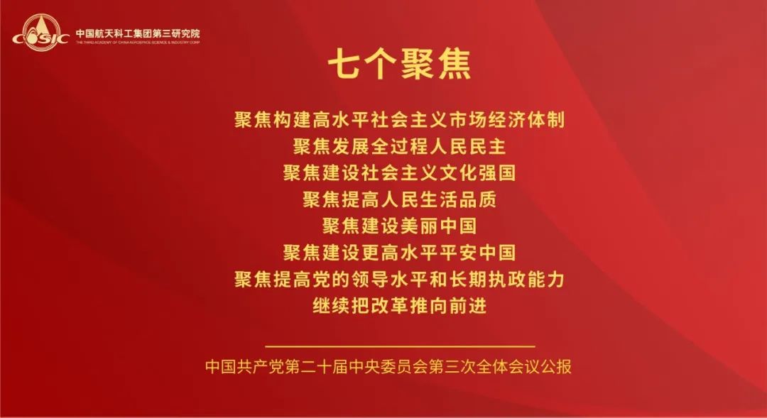 黨的二十屆三中全會,是在以中國式現(xiàn)代化全面推進強國建設、民族復興偉業(yè)的關鍵時期召開的一次十分重要的會議。航天三院黨委將學習好宣傳好貫徹好黨的二十屆三中全會精神作為當前和今后一個時期的一項重大政治任務,高度重視,迅速行動,引導三院全體黨員干部職工把思想和行動統(tǒng)一到全會精神上來,把智慧和力量凝聚到落實全會精神和部署上來,聚焦主責主業(yè),履行強軍首責,持續(xù)推動飛航事業(yè)高質(zhì)量發(fā)展。