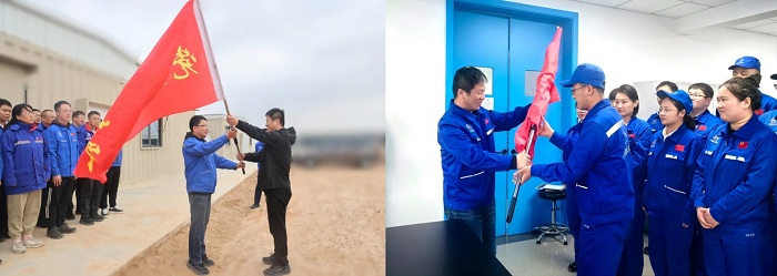 授旗儀式上,所領(lǐng)導(dǎo)為黨員突擊隊代表、青年突擊隊代表授旗。突擊隊隊長介紹隊名、人員組成和任務(wù)目標(biāo)。
