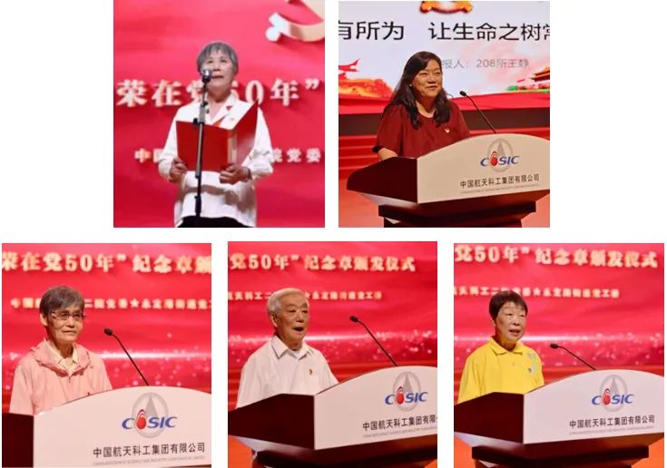 頒發紀念章儀式后,7名黨員代表圍繞感恩在黨50年、傳承航天精神、熱衷公益事業、鄰里互助和推進全民健身事業等內容,分享了發生在身上或身邊的感人故事。在場觀眾深受振奮與感動。