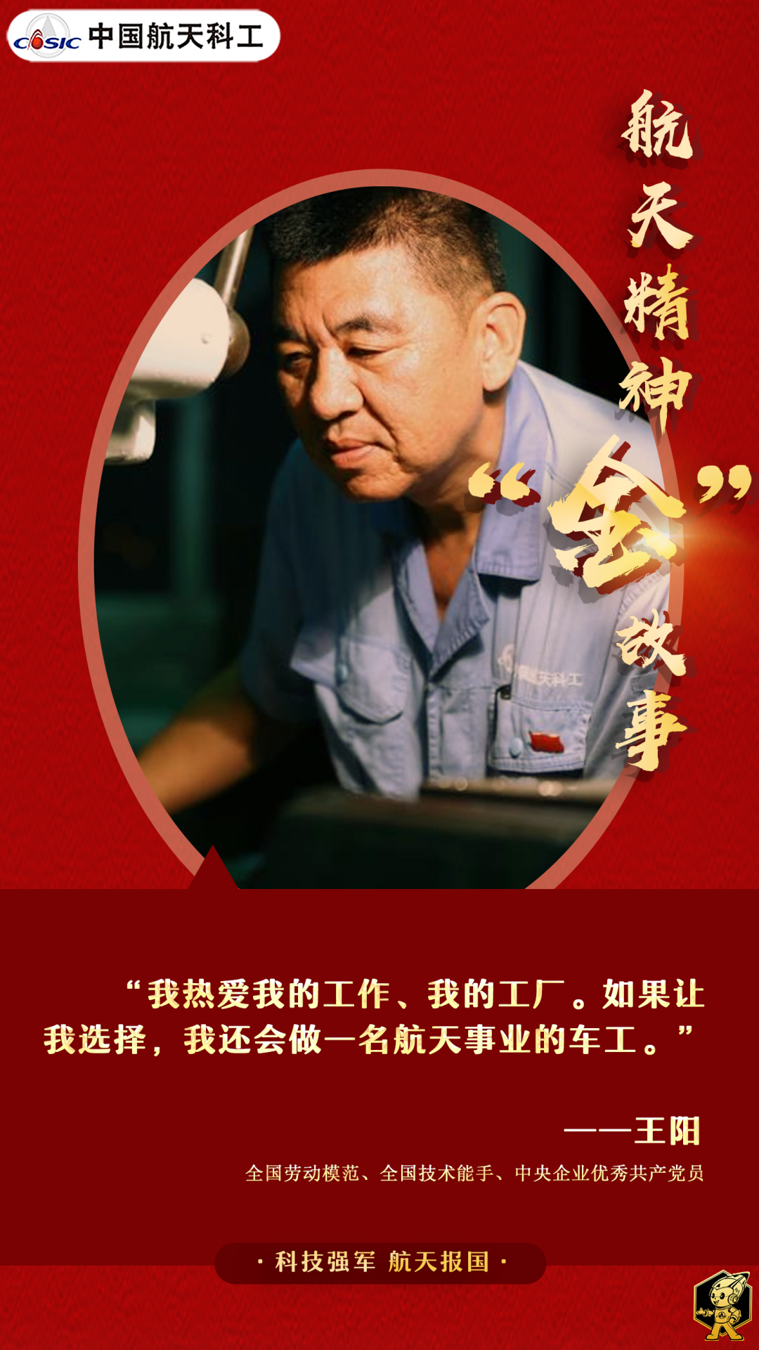 對事業熱愛篤定,對專業執著堅持,三尺車臺,王陽一站就是40年。他用“零失誤”的操作創造了連續28年無廢品紀錄,他用100%的產品合格率保障了載人航天等重大工程任務的成功。因為這股倔勁韌勁,王陽把“鐵疙瘩”車成了航天精品,也把自己“車”成了國之棟梁。