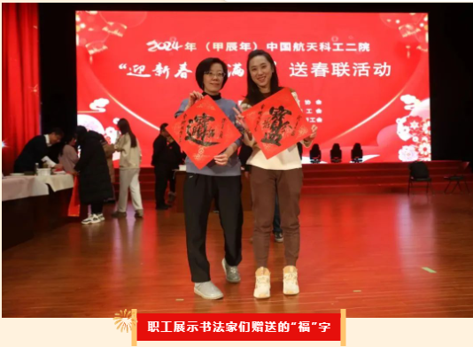 近日,在甲辰年新春佳節(jié)即將到來之際,為進(jìn)一步激發(fā)廣大職工建功新時(shí)代、建設(shè)航天強(qiáng)國(guó)的豪情,營(yíng)造喜慶和諧、健康文明的濃郁節(jié)日氣氛,由中國(guó)航天書法家協(xié)會(huì)主辦,中國(guó)航天科工二院工會(huì)承辦,203所工會(huì)協(xié)辦的2024年“迎新春 福滿門”送春聯(lián)活動(dòng)在二院職工文化中心隆重舉行,為廣大職工群眾送上了新春祝福,傳遞了節(jié)日喜悅。