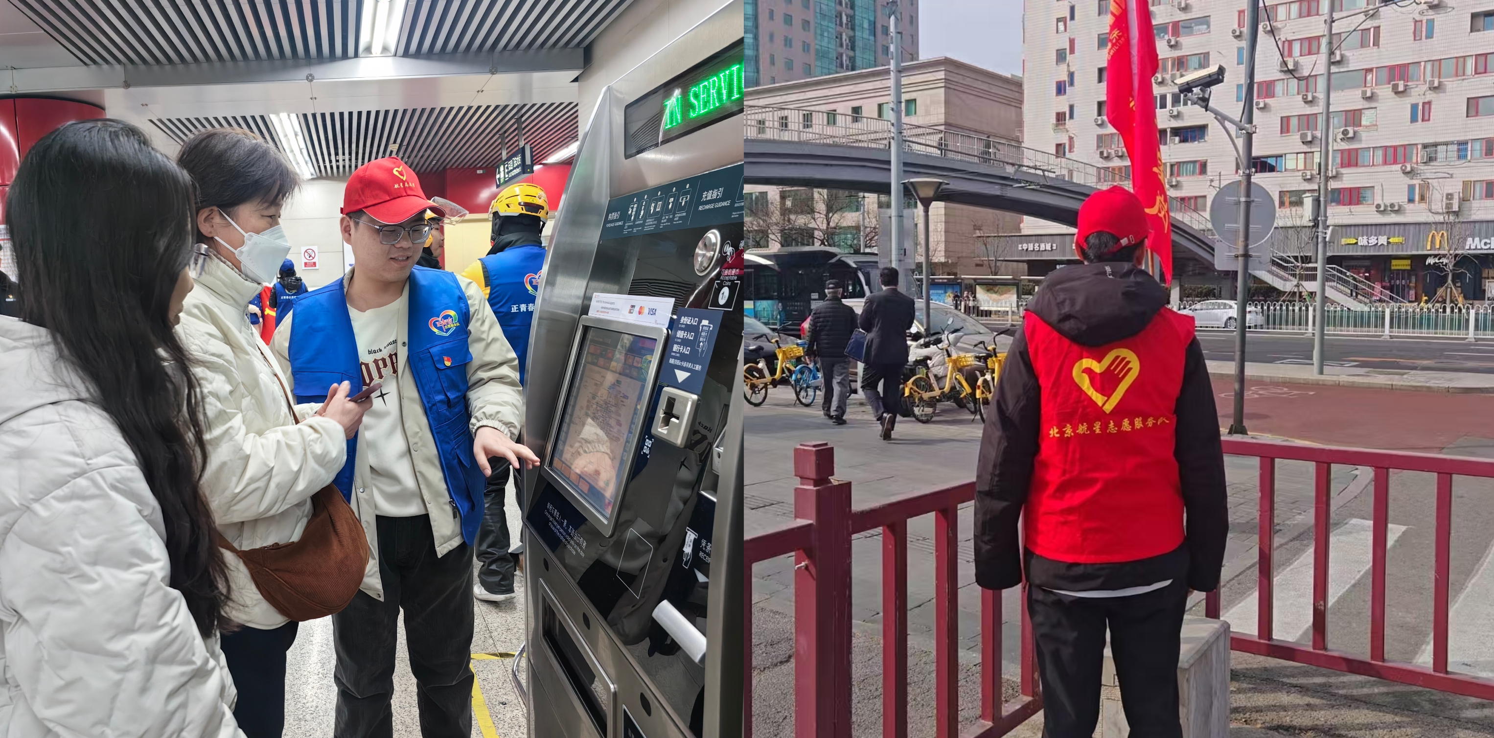▲239廠青年在地鐵站進行志愿指引、在十字路口配合維持秩序,彰顯青年擔(dān)當。