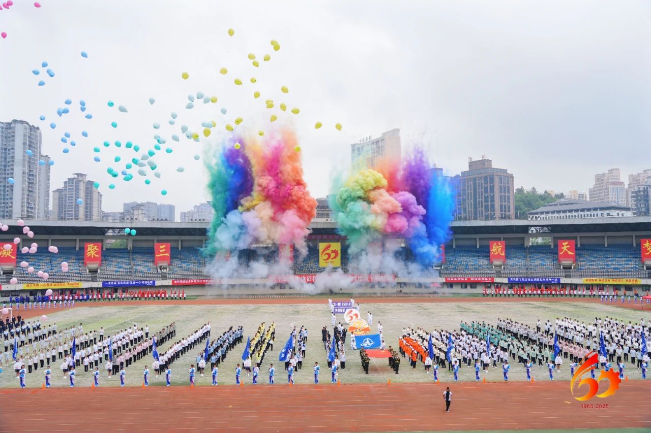 賽前,運動員代表、裁判員代表分別宣誓。由800人組成的廣播體操表演整齊劃一、舒展有力。而由十院100名退休職工帶來的太極八段錦表演則剛?cè)嵯酀?jì),集形與神于一體;兩側(cè)的舞龍更是靜中有動,傳統(tǒng)文化結(jié)合的節(jié)目贏得看臺上陣陣喝彩。貴州航天工業(yè)學(xué)校帶來的團(tuán)體操表演《旗風(fēng)航帆》氣勢恢宏,高燃的音樂更是將全場氛圍引向高潮。
