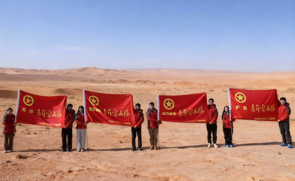 郭大勇在現(xiàn)場為4支青年突擊隊(duì)授旗。當(dāng)青年突擊隊(duì)的旗幟飄揚(yáng)在試驗(yàn)場,青年們感到使命感在胸膛滾燙。耳畔是整齊響亮的誓言,身邊是并肩而立的伙伴,年輕的面龐充滿堅(jiān)毅。戈壁的夕陽為獵獵旌旗鍍上金邊,青年的誓言與曠野的風(fēng)聲交織共鳴。旗幟不僅承載著信任與期望,更點(diǎn)燃了青年沖鋒的斗志。